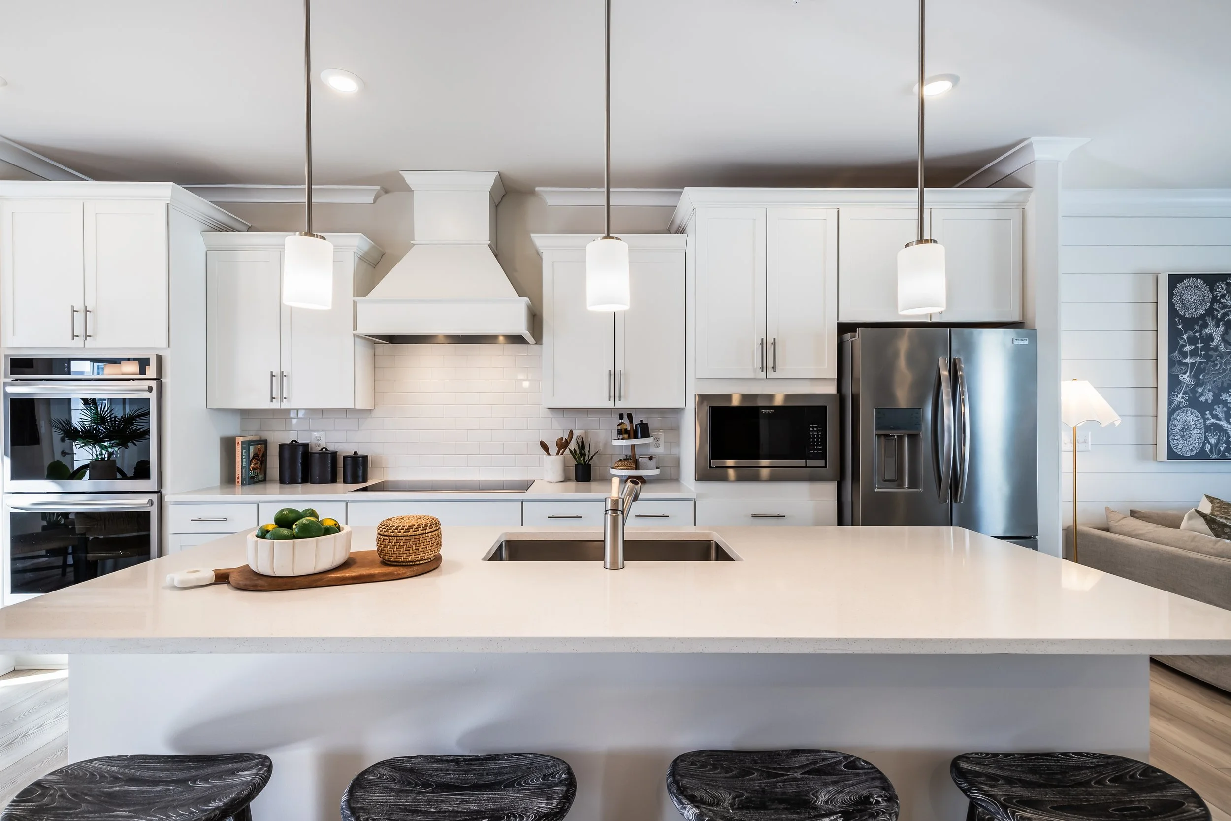 Place a vase of fresh flowers or a bowl of fruit on the kitchen island.